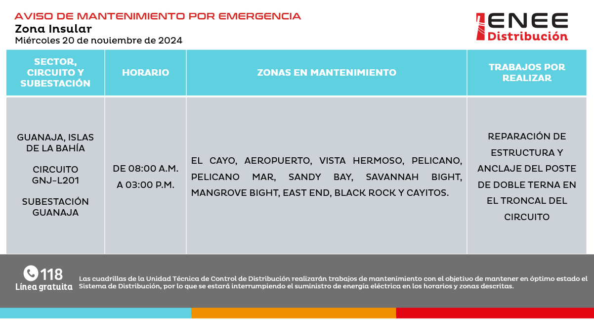 Aviso de Mantenimiento Emergencia - Zona Insular - miércoles 20 de noviembre de 2024