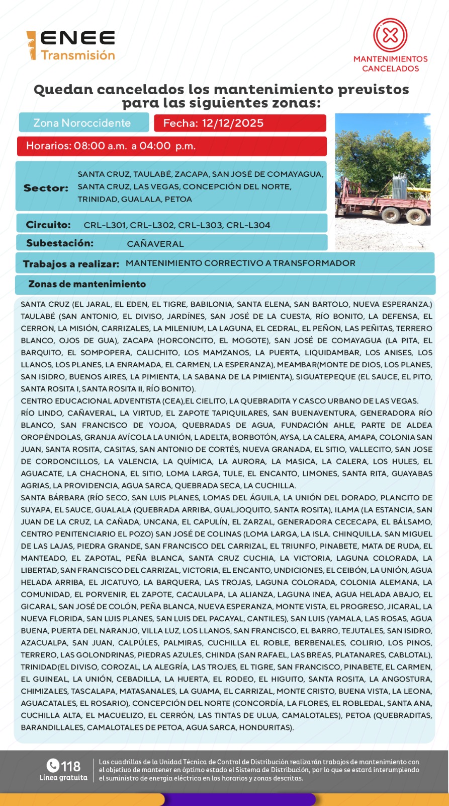 Avisos de Mantenimiento Cancelados - Noroccidente viernes 12 de diciembre de 2025