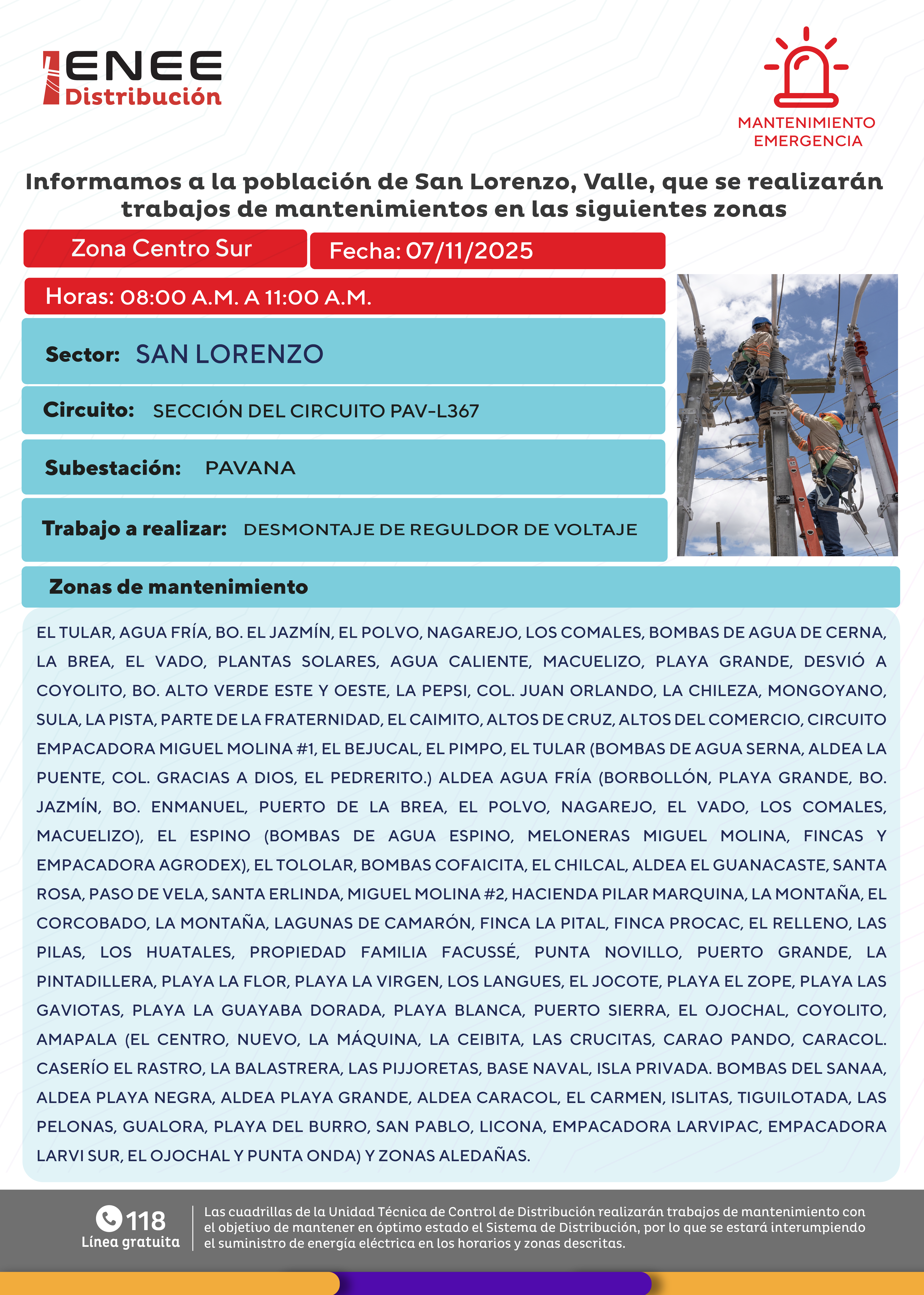 Avisos de Mantenimiento Emergencia -Centro Sur San Lorenzo viernes 06 noviembre de 2025