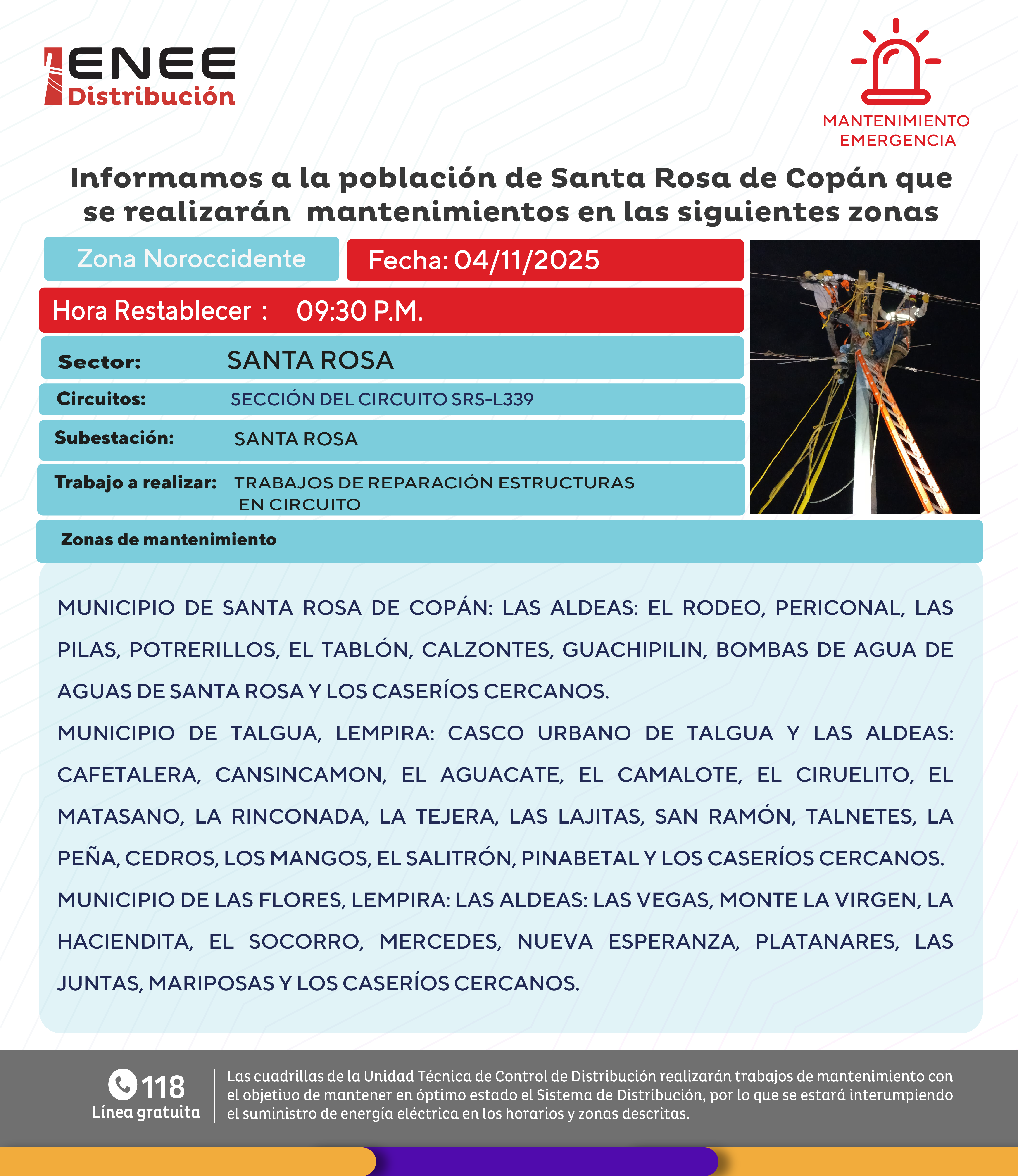 Avisos de Mantenimiento Emergencia - Noroccidente Santa Rosa martes 04 noviembre de 2025