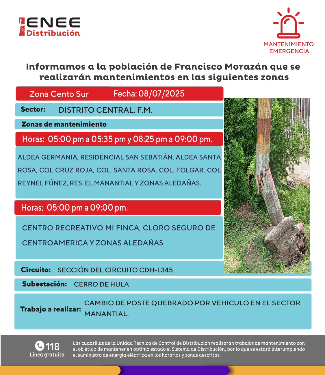 Avisos de Mantenimiento Emergencia - Zona Centro Sur martes 08 de julio de 2025