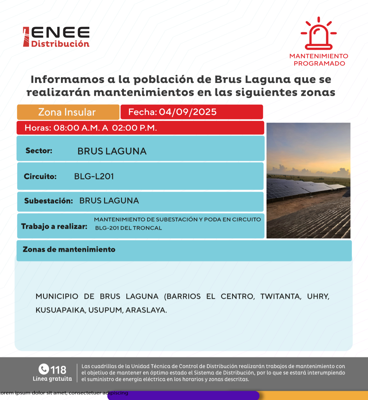 Avisos de Mantenimiento Emergencia - Zona Insular Brus Laguna jueves 04 de septiembre de 2025