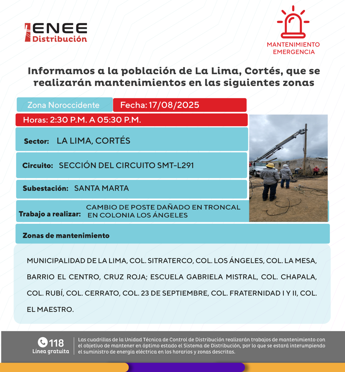 17 de Agosto de 2025 Lugar: La Lima > Cortés Regresar | Califique esta Publicación |