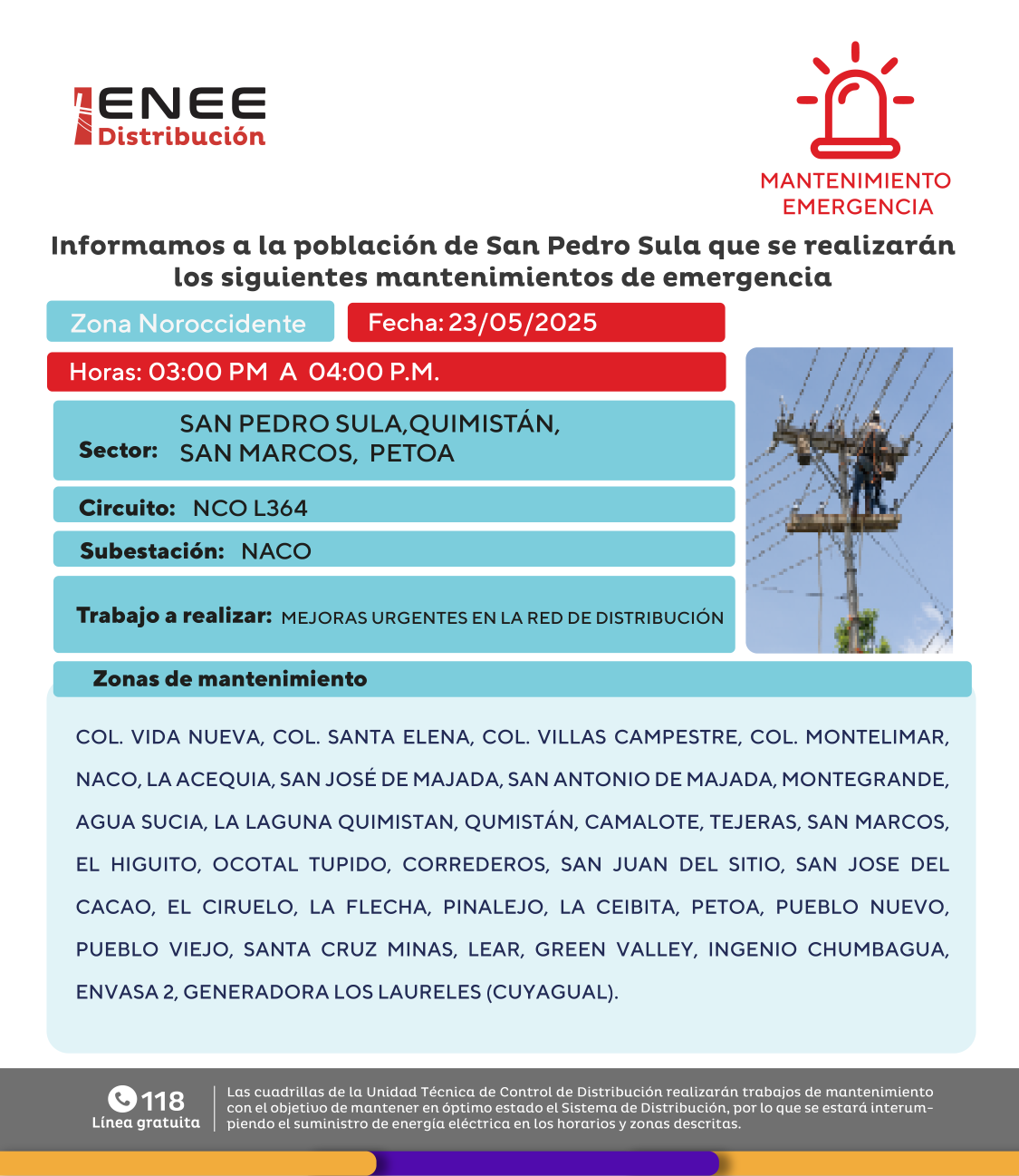 Avisos de Mantenimiento Emergencia - Zona Noroccidente viernes 23 de mayo de 2025